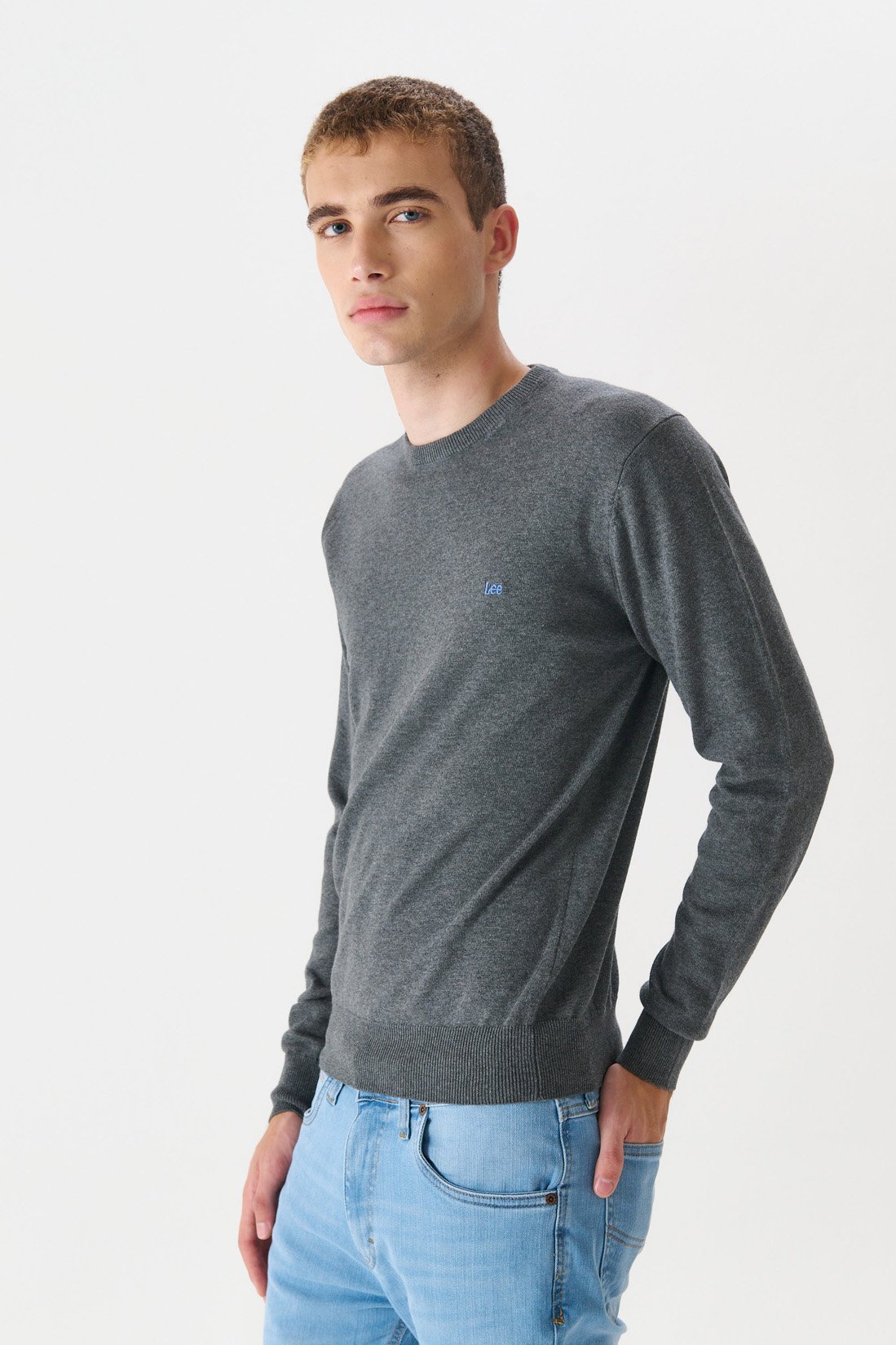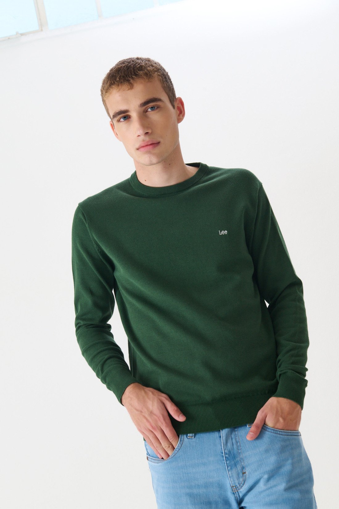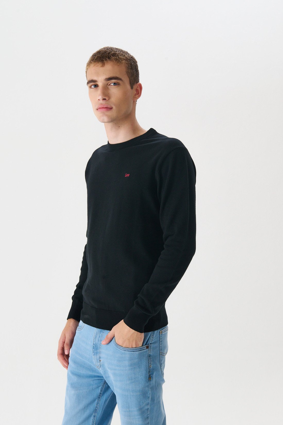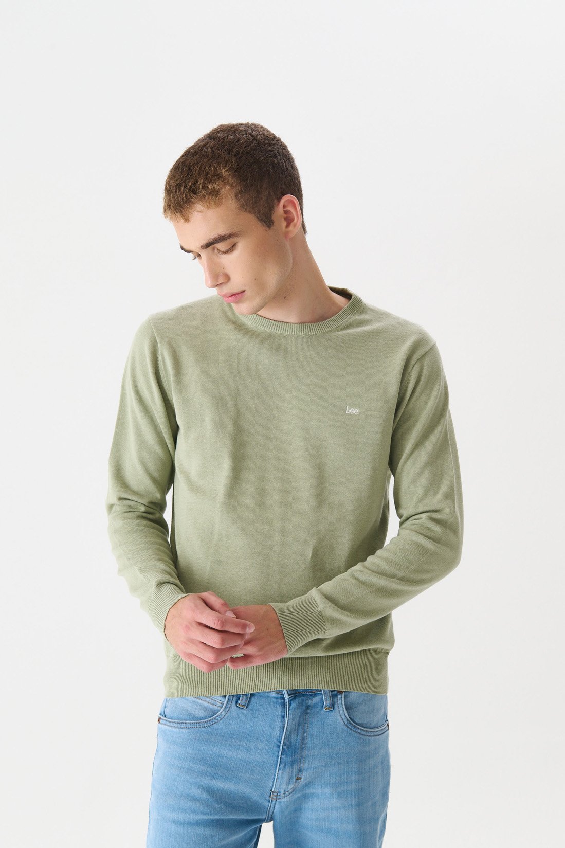 Sweater en hilado de algodón. Escote redondo. Logo bordado a contratono. Composición 100% hilo algodón plus.