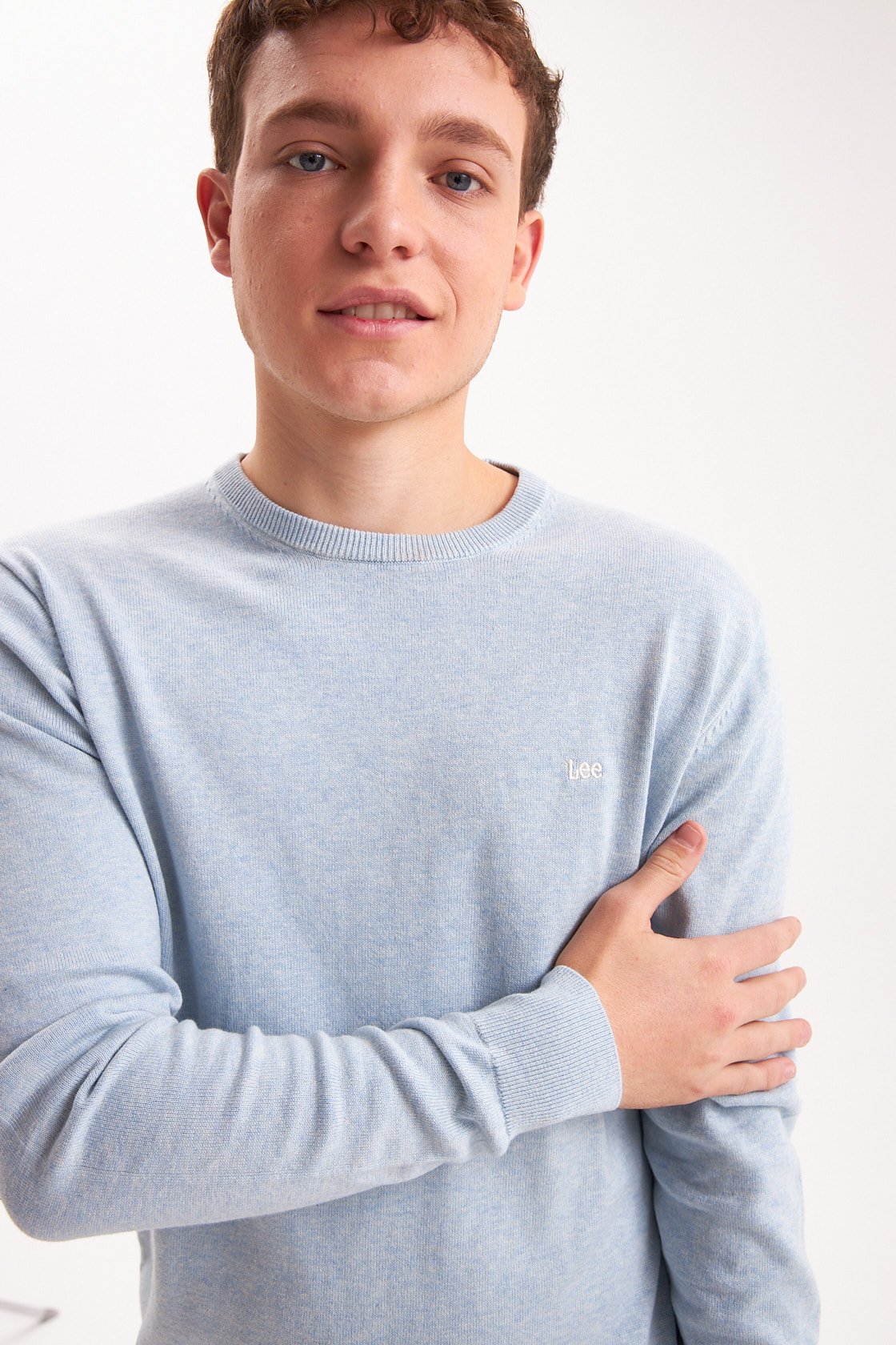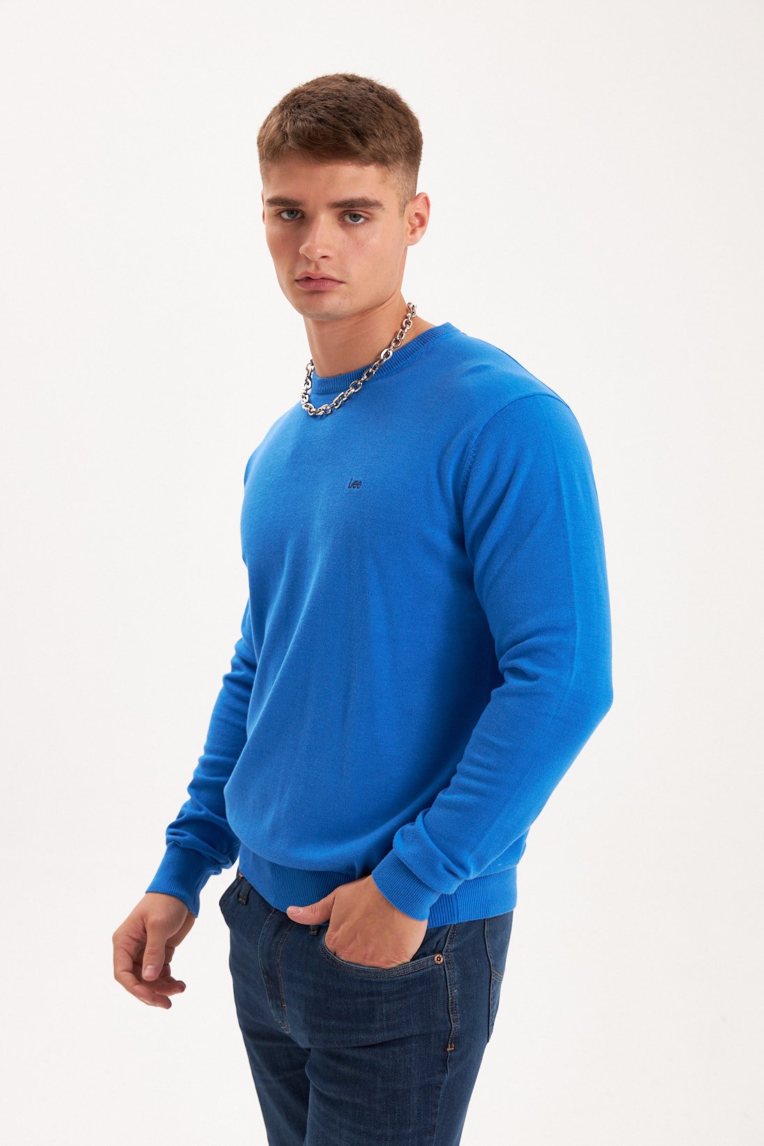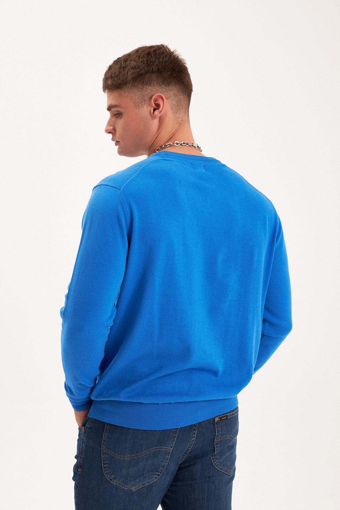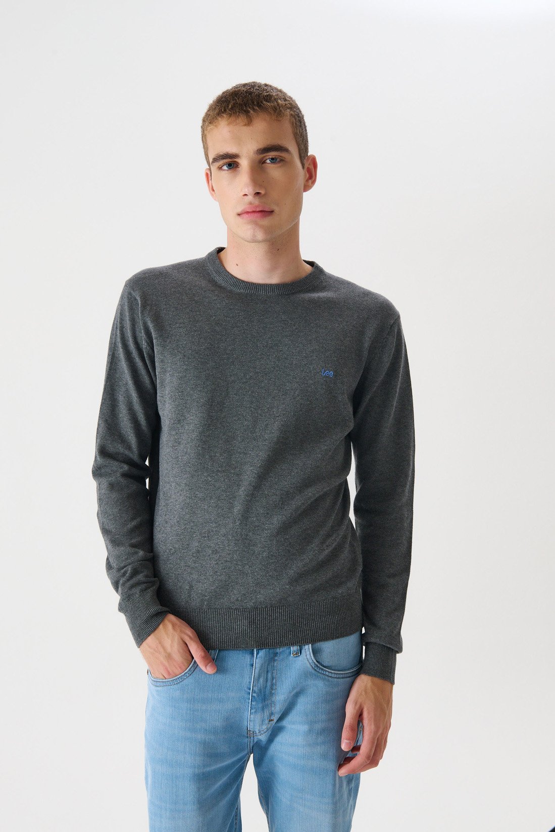 Sweater en hilado de algodón. Escote redondo. Logo bordado a contratono. Composición 100% hilo algodón plus.
